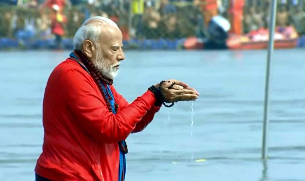 प्रयागराज, प्रयागराज महाकुंभ 2025 के पावन अवसर पर प्रधानमंत्री नरेंद्र मोदी ने आज बुधवार को त्रिवेणी संगम पहुंचकर पवित्र स्नान किया। इस दौरान उनके साथ उत्तर प्रदेश के मुख्यमंत्री योगी आदित्यनाथ भी मौजूद थे। प्रधानमंत्री ने स्नान के बाद गंगा आरती की और देशवासियों के सुख-समृद्धि की कामना की। संगम में पवित्र स्नान के बाद पीएम मोदी ने गंगा नदी के तट पर विधिवत पूजा-अर्चना की और वैदिक मंत्रोच्चार के बीच विशेष अनुष्ठान किया। इस मौके पर उन्होंने कहा कि गंगा, यमुना और अदृश्य सरस्वती का संगम भारत की सांस्कृतिक और आध्यात्मिक विरासत का प्रतीक है। प्रधानमंत्री मोदी से पहले कई प्रमुख हस्तियां भी त्रिवेणी संगम में आस्था की डुबकी लगा चुकी हैं, जिनमें, केंद्रीय गृह मंत्री अमित शाह, रक्षा मंत्री राजनाथ सिंह, उत्तर प्रदेश के मुख्यमंत्री योगी आदित्यनाथ, अन्य केंद्रीय मंत्री और राज्यों के मुख्यमंत्री शामिल हैं। महाकुंभ में उमड़ा जनसैलाब प्रयागराज में महाकुंभ 2025 के चलते श्रद्धालुओं का भारी जनसैलाब उमड़ा हुआ है। लाखों करोड़ों भक्त देश-विदेश से आकर गंगा स्नान कर रहे हैं और साधु-संतों के प्रवचनों में भाग ले रहे हैं। सुरक्षा व्यवस्था को ध्यान में रखते हुए हजारों पुलिसकर्मी और विशेष सुरक्षा बल तैनात किए गए हैं।