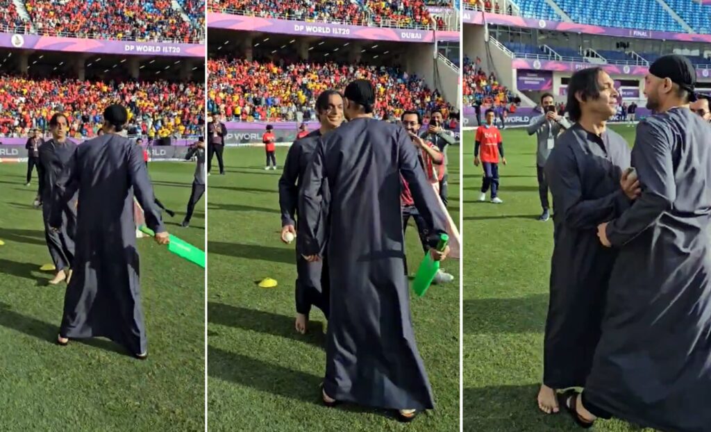 दुबई । भारत और पाकिस्तान के बीच 23 फरवरी को यहां होने वाले आईसीसी चैम्पियंस ट्रॉफी मुकाबले का जहां प्रशंसक बेसब्री से इंतजार कर रहे हैं। वहीं इससे पहले भारत के दिग्गज स्पिनर रहे हरभजन सिंह और पाकिस्तान के पूर्व तेज गेंदबाज शोएब अख्तर का एक वीडियो आया है। इसमें आईएलटी 20 मैच के फाइनल के दौरान दोनों एक दूसरे से टकराते नजर आए हालांकि ये सच नहीं बल्कि एक मजाकिया वीडियो है। इस वीडिया में हरभजन बल्ला लेकर आगे बढ़ते हैं। वहीं शोएब उनको पीछे धक्का दे रहे हैं। हरभजन बल्ला लेकर अख्तर की तरफ बढ़े तो उन्होंने गेंद दिखाकर उनको जवाब दिया। वहीं जब हरभजन उनके पास पहुंचे तो सीने से सीना टकराते हुए उनको पीछे की तरफ धक्का दिया। इस वीडियो को सोशल मीडिया पर जमकर पसंद किया जा रहा है। 23 फरवरी को होने वाले इस मुकाबले को होने में अभी दो सप्ताह हैं पर हरभजन और अख्तर के मजाक ने दोनों देश के प्रशंसकों के लिए माहौल जरुरत बना दिया है। अख्तर और हरभजन के बीच में काफी अच्छी दोस्ती है। दोनो ने अपनी अपनी टीमों की ओर से शानदार रिकार्ड बनाये हैं। अब दोनो ही कमेंट्री करते दिखते हैं।