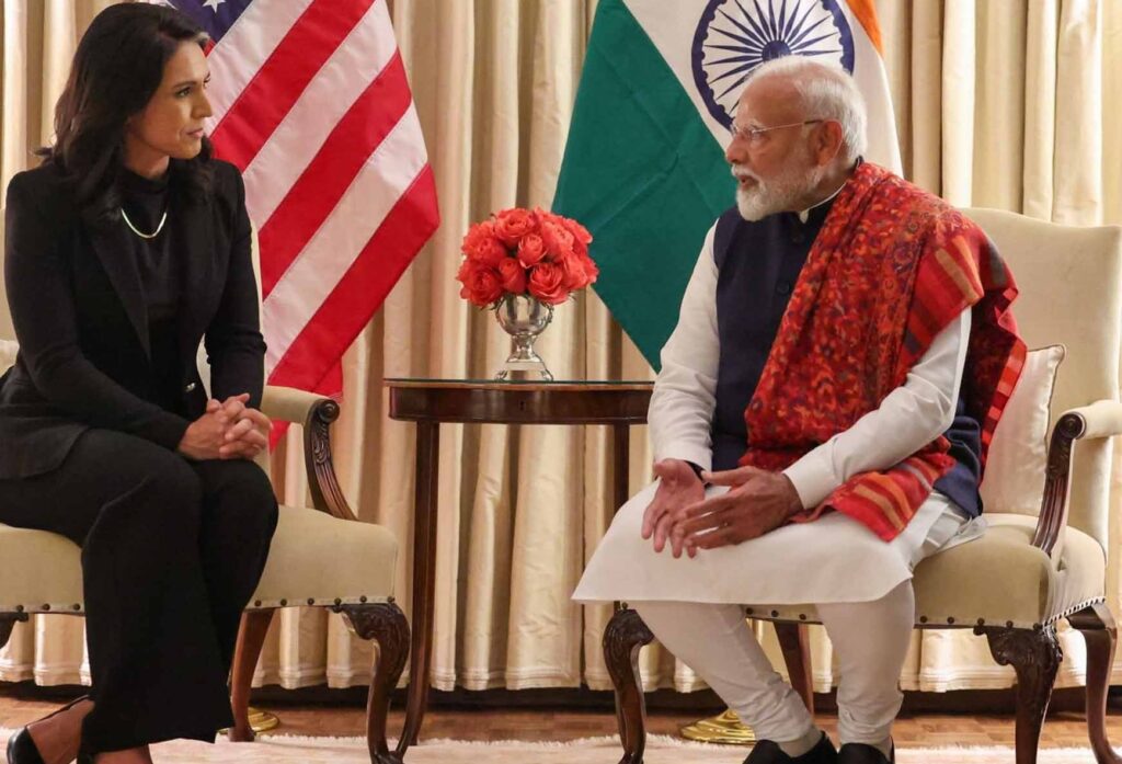 वॉशिंगटन । पूर्व सैन्य कर्मी हैं और वह डेमोक्रेटिक पार्टी से कांग्रेस (अमेरिकी संसद) की सदस्य रह चुकी तुलसी गबार्ड खुद को हिंदू बताती हैं, उन्होंने पीएम नरेंद्र मोदी से मुलाकत की। पीएम मोदी ने इस मुलाकात की जानकारी देते हुए एक्स पर लिखा, वाशिंगटन डीसी में यूएसए की राष्ट्रीय खुफिया निदेशक तुलसी गबार्ड से मुलाकात की। उन्हें नियुक्ति की बधाई दी। भारत-यूएसए मैत्री के विभिन्न पहलुओं पर चर्चा की, जिसकी वे हमेशा से प्रबल समर्थक रही हैं। प्रधानमंत्री नरेंद्र मोदी अमेरिका की यात्रा पर हैं और भारतीय समयानुसार गुरुवार तड़के अमेरिकी राजधानी पहुंचे। उन्होंने एक्स पर लिखा, “कुछ समय पहले वॉशिंगटन डीसी पहुंचा हूं। अमेरिका के राष्ट्रपति डोनाल्ड ट्रंप से मिलने को लेकर ख़ुश हूं। भारत और अमेरिका के बीच व्यापक वैश्विक रणनीतिक साझेदारी बनाने को लेकर उत्साहित हूं। हम दोनों देश अपने लोगों और अपनी धरती के बेहतर भविष्य के लिए मिलकर काम करते रहेंगे। 4 घंटे पहलेअमेरिकी ख़ुफ़िया विभाग की प्रमुख तुलसी गबार्ड से मोदी की मुलाक़ात, क्या हुई बात? भारत के प्रधानमंत्री नरेंद्र मोदी ने अमेरिका में तुलसी गबार्ड से मुलाक़ात की। तुलसी गबार्ड को अमेरिका की डायरेक्टर ऑफ़ नेशनल इंटेलिजेंस बनाए जाने की पुष्टि की गई। पीएम मोदी ने इसके लिए तुलसी गबार्ड को बधाई दी। उन्होंने एक्स पर लिखा, “वॉशिंगटन डीसी में अमेरिका की डायरेक्टर ऑफ़ नेशनल इंटेलिजेंस तुलसी गबार्ड से मुलाक़ात की। उनकी नियुक्ति पर उनको बधाई दी। इस दौरान उनके साथ भारत-अमेरिका दोस्ती के कई आयामों पर बातचीत हुई। वो हमेशा से इसकी मज़बूत समर्थक रही हैं। तुलसी गबार्ड 18 इंटेलिजेंस एजेसिंयों की निगरानी करेंगी। इनमें सीआईए, एफ़बीआई और नेशनल सिक्योरिटी एजेंसी भी शामिल हैं। इसके अलावा वो 70 अरब डॉलर से ज़्यादा के बजट को भी संभालेंगी।