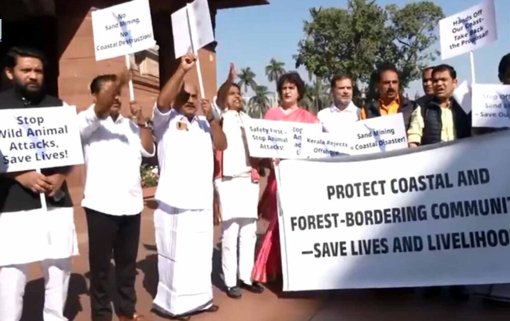 नई दिल्ली,। लोकसभा में विपक्ष के नेता राहुल गांधी और पार्टी के अन्य अनेक सांसदों ने गुरुवार को संसद भवन परिसर में मछुआरों तथा आदिवासियों के मुद्दों को लेकर प्रदर्शन किया है। केरल के तटीय और वन सीमावर्ती क्षेत्रों में रहने वाले समुदायों की जिंदगी बचाने का संदेश देते हुए प्रदर्शन कर रहे कांग्रेस के सांसदों ने अपने हाथों में बैनर व तख्तियां ले रखीं थीं। संसद की कार्यवाही शुरू होती उससे पहले ही संसद भवन परिसर में मछुआरों तथा आदिवासियों के मुद्दे को लेकर कांग्रेस के अनेक सांसदों ने प्रदर्शन किया। प्रदर्शन में लोकसभा में विपक्ष के नेता राहुल गांधी के साथ ही कांग्रेस महासचिव एवं वायनाड से कांग्रेस सांसद प्रियंका गांधी और अन्य सदस्यों ने हिस्सा लिया। यहां राहुल गांधी के साथ ही यूडीएफ सांसदों ने भी केरल के तटीय और वन सीमावर्ती समुदायों की रक्षा के लिए विरोध प्रदर्शन कर अपनी बात रखी।