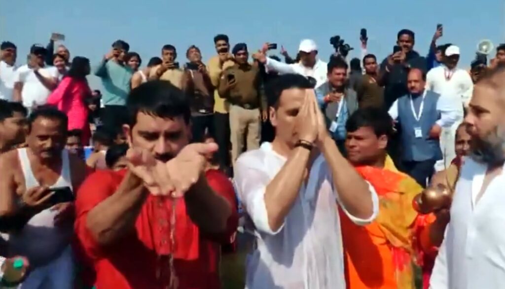 प्रयागराज,। अभिनेता अक्षय कुमार का संगम में डुबकी लगाते हुए उनका वीडियो सोशल मीडिया पर वायरल हो रहा है, जिसमें वह संगम में आस्था की डुबकी लगाते नजर आ रहे हैं। डुबकी लगाने के बाद अक्षय ने महाकुंभ के इंतजामों की तारीफ की और यूपी के सीएम योगी आदित्यनाथ को धन्यवाद दिया। संगम में स्नान करने के बाद अक्षय ने कहा कि बहुत ही मजा आया, बहुत बढ़िया इंतजाम किए गए हैं। अक्षय ने कहा कि 2019 में जब पिछला कुंभ हुआ था, तब लोग गठरी बांधकर आते थे, लेकिन इस बार महाकुंभ में बड़े-बड़े लोग पहुंच रहे हैं। उन्होंने कहा कि इस बार अंबानी-अडानी आ रहे हैं, बड़े एक्टर आ रहे हैं। यह देखना बहुत अच्छा लग रहा है कि किस तरह महाकुंभ के स्तर को और ऊंचा किया गया है। अक्षय ने महाकुंभ में मौजूद पुलिस, सुरक्षाकर्मी और वर्कर्स की भी जमकर तारीफ की। उन्होंने कहा कि सभी ने बहुत मेहनत की है और श्रद्धालुओं की सुविधा का पूरा ध्यान रखा। अक्षय कुमार सफेद कुर्ता-पायजामा पहने हुए नजर आए। जब वह संगम में डुबकी लगाने पहुंचे तो उन्हें देखने उनके फैंस वहां पहुंच गए। अक्षय से पहले तमन्ना भाटिया, अनुपम खेर, विक्की कौशल जैसे कई बड़े बॉलीवुड सितारे भी महाकुंभ में डुबकी लगा चुके हैं।