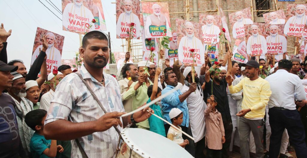 भोपाल,। लोकसभा में बुधवार को वक्फ संशोधन विधेयक पेश हो गया है। विधेयक में किए गए प्रावधानों से देश भर में मुस्लिम समाज खुश और उत्साहित है। इसकारण मध्य प्रदेश की राजधानी भोपाल की सड़कों पर उतरकर मुस्लिम समुदाय के लोग संशोधन विधेयक का समर्थन करते दिखाई दिए हैं। केंद्र द्वारा बुधवार को लोकसभा में वक्फ संशोधन विधेयक केंद्रीय कानून मंत्री ने पेश किया है। इस लेकर राजनीतिक दल दो हिस्सों में बटे हुए हैं, एनडीए के साथी विधेयक को मुस्लिम समाज के हित में बता रहे हैं, वहीं कांग्रेस सहित अन्य विपक्षी दल विधेयक को मुस्लिमों के हक पर प्रहार बता रहे हैं। विधेयक को लेकर आमजन मुखरता से अपनी राय जाहिर नहीं कर रहे हैं, मगर भोपाल से जो नजारा सामने आया है, वह मुस्लिमों की इस विधेयक को लेकर संतुष्टि को जाहिर कर रहा है। आनंदपुर क्षेत्र के कोकता मैदान में पहुंचकर मुस्लिम समाज के लोग अपनी खुशियां जाहिर कर रहे हैं। महिलाएं बुर्के में पहुंची और अपनी खुशी का इजहार कर रही हैं। ढोल बज रहे हैं और लोग अपनी भावनाएं जाहिर करते हुए हाथों में पोस्टर लिए हुए हैं, जिन पर शुक्रिया मोदी जी लिखा हुआ है। इस तरह हताई खेड़ा क्षेत्र में भी मुस्लिम समाज के लोग इस विधेयक को लेकर अपनी खुशियां जाहिर कर रहे हैं। संशोधन विधेयक को लेकर खुशियां मनाने वाली महिलाओं का कहना है कि देश की मोदी सरकार मुस्लिम समाज के उत्थान और कल्याण के लिए काम कर रही है।