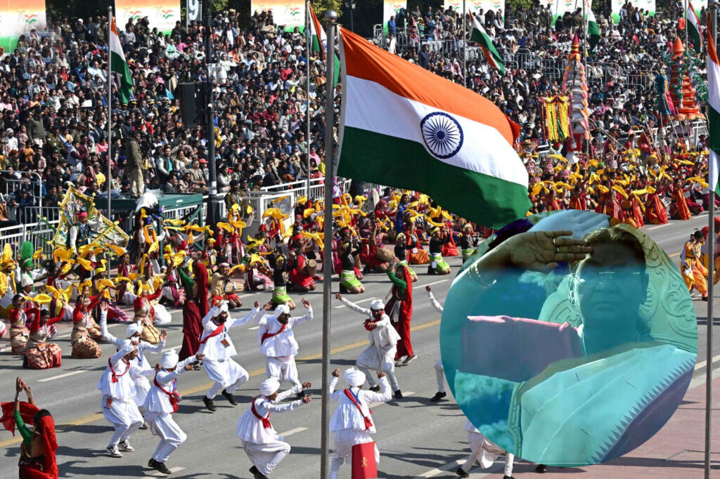 नई दिल्ली , राष्ट्रपति द्रौपदी मुर्मू ने 76वें गणतंत्र दिवस के मौके पर कर्तव्य पथ पर तिरंगा फहराया। 21 तोपों की सलामी के बाद परेड शुरू हुई। इंडोनेशिया के जवान भी गणतंत्र दिवस परेड में शामिल हुए। उनके साथ इंडोनेशिया के राष्ट्रपति प्रबोवो सुबियांतो भी थे, जो इस वर्ष के समारोह के मुख्य अतिथि हैं। परंपरा के अनुसार, दोनों राष्ट्रपतियों को सेना की सबसे वरिष्ठ रेजिमेंट, राष्ट्रपति के अंगरक्षक द्वारा कर्तव्य पथ तक ले जाया गया। 40 वर्षों से बंद परंपरा को पुनर्जीवित करते हुए, वे पारंपरिक बग्गी में सवार होकर समारोह में पहुंचे। उनके आगमन पर, प्रधानमंत्री नरेंद्र मोदी ने दोनों का स्वागत किया। प्रधानमंत्री ने उपराष्ट्रपति जगदीप धनखड़ और उनकी पत्नी सुदेश धनखड़ का भी कर्तव्य पथ पर स्वागत किया। राष्ट्रगान के बीच राष्ट्रीय ध्वज फहराया गया, जिसके बाद स्वदेशी 105-एमएम लाइट फील्ड गन का उपयोग करके 21 तोपों की सलामी दी गई। इस वर्ष के गणतंत्र दिवस समारोह में संविधान के लागू होने के 75 वर्ष पूरे होने पर ध्यान केंद्रित किया गया और जन भागीदारी पर जोर रहा। इस उत्सव में भारत की सांस्कृतिक विविधता, एकता, समानता, विकास और सैन्य शक्ति का प्रदर्शन किया गया। सांस्कृतिक मंत्रालय के 300 कलाकारों के साथ वाद्य यंत्र बजाते हुए परेड निकली। कलाकारों द्वारा शहनाई, नादस्वरम, मशक बीन, बांसुरी, शंख और ढोल जैसे पारंपरिक संगीत वाद्ययंत्रों की मदद से सारे जहां से अच्छा बजाया गया। समारोह में वैश्विक स्पर्श जोड़ते हुए, 152 सदस्यों वाली इंडोनेशियाई राष्ट्रीय सशस्त्र बलों की मार्चिंग टुकड़ी और 190 सदस्यों वाली इंडोनेशिया की सैन्य अकादमी का सैन्य बैंड भी परेड में शामिल हुआ।